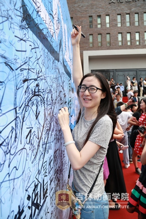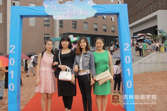 伴着舒缓的音乐,同学们三个一群、五个一组的走上铺满红毯的T型台,T型台上四个造型别致的拱门一字排开,分别寓意2010级毕业生在学院度过的难忘四年。每个年份用“怀揣梦想,步入校园”、“我的青春我做主”、“坚定目标,永不言败”、“我的未来不是梦”四句简单的话语概括了同学们在大学生活中每一年的生活轨迹。红毯的尽头是“2014,再见母校”签名墙,毕业生在签名墙上写下自己的姓名,留下大学最美好的回忆。