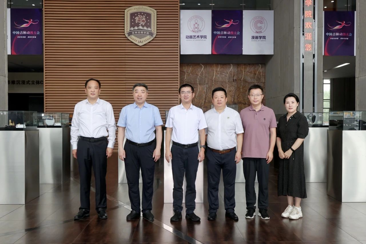 在参观吉林国际动漫博物馆时,调研组对馆内收藏的众多国内外著名大师的动画和漫画手稿赞叹不已,沉浸在优秀作品带来的历史故事、文化传承及视觉美感之中。在学研产一体化创作成果展厅,调研组饶有兴致地观看了吉动师生共同创作的《疯狂电脑城》《山海之战》等原创电影;红色漫画、系列文创产品设计、游戏《长白觉醒》等,赞扬师生们的创意想象力丰富,专业水平高。