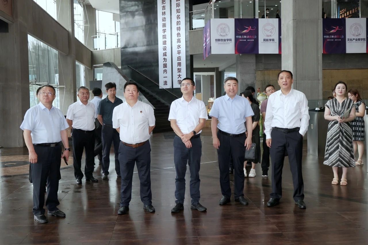 调研组先后参观了学校校史馆、吉林国际动漫博物馆、学研产一体化创作成果展厅。在校史馆内,刘振华向调研组详细介绍了学校的办学规模、办学特色、人才培养、实践教学、招生就业情况等。张琳对于我校双主体办学模式、学研产一体化的办学特色,毕业生就业率等工作给予高度肯定。他认为,金年金字招牌诚信至上培养的学生有很强的创意思维,动手能力强;师生作品注重“艺术+技术”的融合,特别是学校师生创作的动画大电影《青蛙王国》、动画系列片《长白精灵》都为宣传吉林省的地域元素与历史文化做出了贡献。