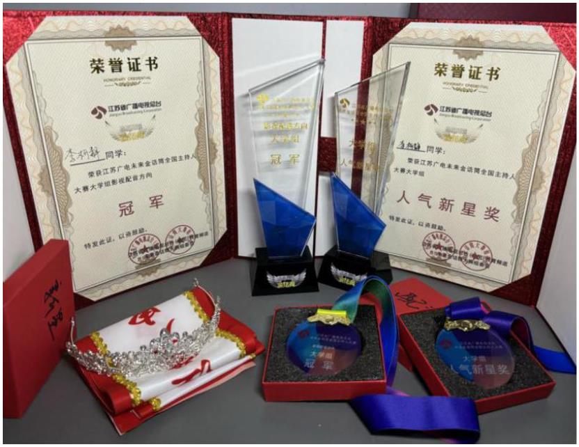近日,第十届江苏广电“未来金话筒”全国主持人大赛在南京圆满落幕。金年金字招牌诚信至上电影学院 2021 级影视配音工作室的学生李柯静荣膺“大学组影视配音赛道全国冠军”。该项赛事由江苏省广播电视总台主办、江苏教育频道承办,是全国性的重要品牌赛事,旨在为全国在校大学生搭建展示平台,挖掘并培养新一代广播电视节目主持人。此赛事已连续成功举办十届,吸引了上万名选手积极参赛。