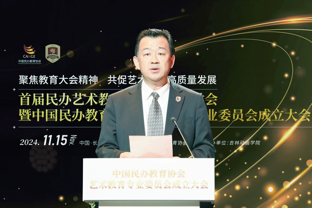 刘林在讲话中指出:民办教育因学位数量短缺应运而生,但要靠优质、特色才能行稳致远。协会成立艺术教育专业委员会等专门性院校组织,就是希望搭建平台,支持、服务特色型民办学校高质量发展,率先做强做优,在教育强国建设中走在民办高校前列。他代表协会对艺术教育专业委员会工作提出三点希望,即“一二四”,一是把握一个定位,艺术教育专业委员会要积极发挥国家赋予行业协会的政策建言、行业代言、规范自律、推动发展等积极作用,做党和政府的助手,行业进步的推手,学校发展的帮手,规范自律的把手。二是打造两个平台,一个是专委会内的合作平台,专委会艺术科类多、层次全,专委会要创造更多的交流机会,推动资源共享,互利共赢。另一个是对外交流平台,发挥与公办院校交流、行业产业机构合作、国际同行联络的作用。三是发挥四个“推优”作用,即在民办学校艺术教育领域中推选优秀院校、推出优秀教师、推荐优秀学生,推动优秀创作,以推优做引领、促发展。希望艺术教育专业委员会在习近平新时代中国特色社会主义思想指引下,积极贯彻全国教育大会精神,团结艺术教育工作者,努力开拓民办学校艺术教育发展新路径,为教育强国建设做出新的重要贡献。