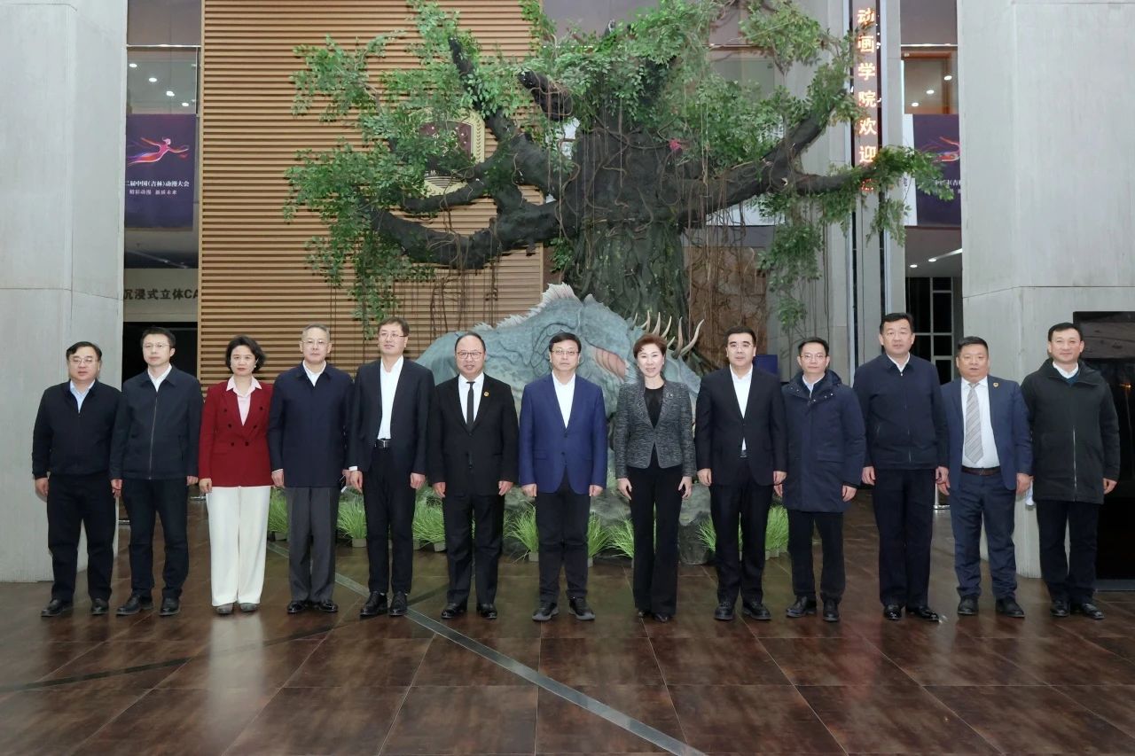 曹路宝一行来到学研产一体化创作成果展厅,认真听取了我校高新校区和双阳校区建设情况的汇报,深入了解了学校依托吉动(双阳)产教融合实践教学基地,打造“教育+”模式、赋能文化新消费的发展规划与战略布局。随后,调研组观看了吉动师生原创动画大电影《新卖火柴的小女孩之芙蕾雅》《疯狂电脑城》《山海之战》以及游戏《长白觉醒》的精彩片段,还参观了系列IP衍生品。曹路宝对学校24年来的发展成果予以充分肯定,鼓励创作团队继续秉持技术与艺术协同创新的理念,以技术为引领,推动影视艺术高质量发展。