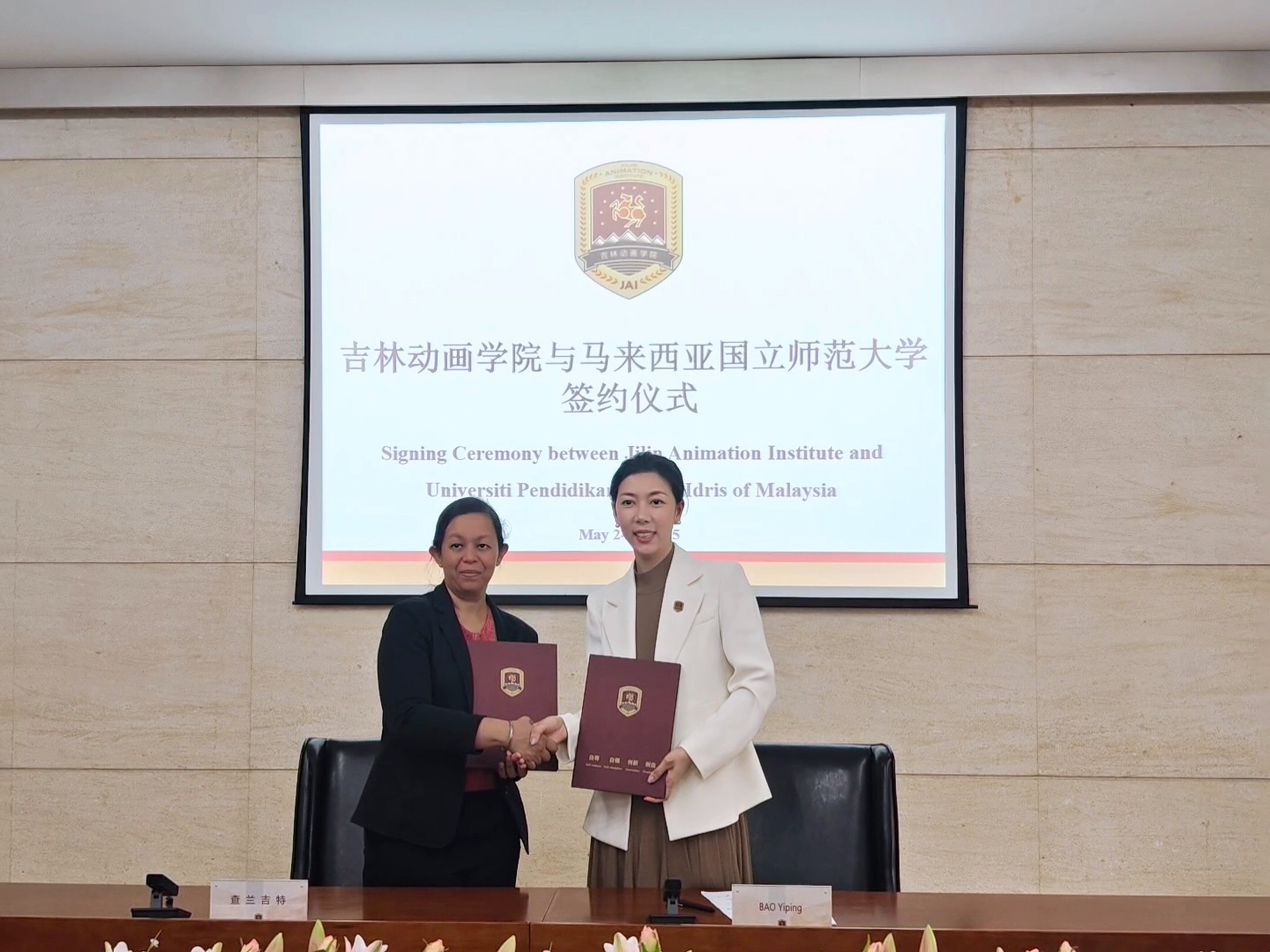 随后,双方举行了签约仪式。鲍怡萍致欢迎词,并介绍了学校的办学定位及专业优势,马来西亚国立师范大学代表详细分享了该校在艺术教育等领域的特色课程。双方围绕师生交流、联合制作项目等具体合作方向展开探讨,一致认为两校在相关艺术类专业具有广阔的合作空间。在两校代表的见证下,双方正式签署了合作框架协议。未来,双方将在师生交流、学术研究等方面开展合作,通过资源共享与优势互补,为师生搭建更广阔的发展平台。