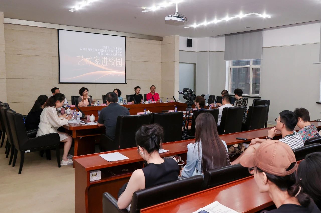 座谈会前,艺术家们参观了学校校史馆、吉林国际动漫博物馆、学研产一体化创作成果展厅。对学校的办学历程及取得的丰硕成果表示赞赏,对《疯狂电脑城》《新卖火柴的小女孩之芙蕾雅》等师生原创动画电影给予高度赞誉。